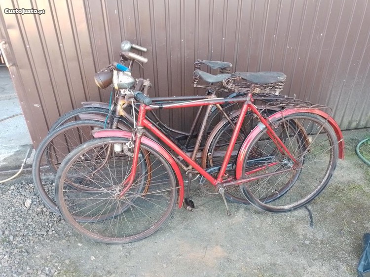 Lote de 3 bicicletas pasteleiras antigas 2 de homem e uma de senhora a de senhora tem os guarda lamas ingleses ver fotos estão completas uma marca HERMES boas bases para restauro estão como mostra as fotos boa base também para restauro tenho mais bicicletas e peças ver os meus outros anúncios para contactar ou tirar alguma duvida através do anuncio enviar mensagem ao anunciante ou através do contacto que está no anuncio muito obrigado..nota o preço é do conjunto..