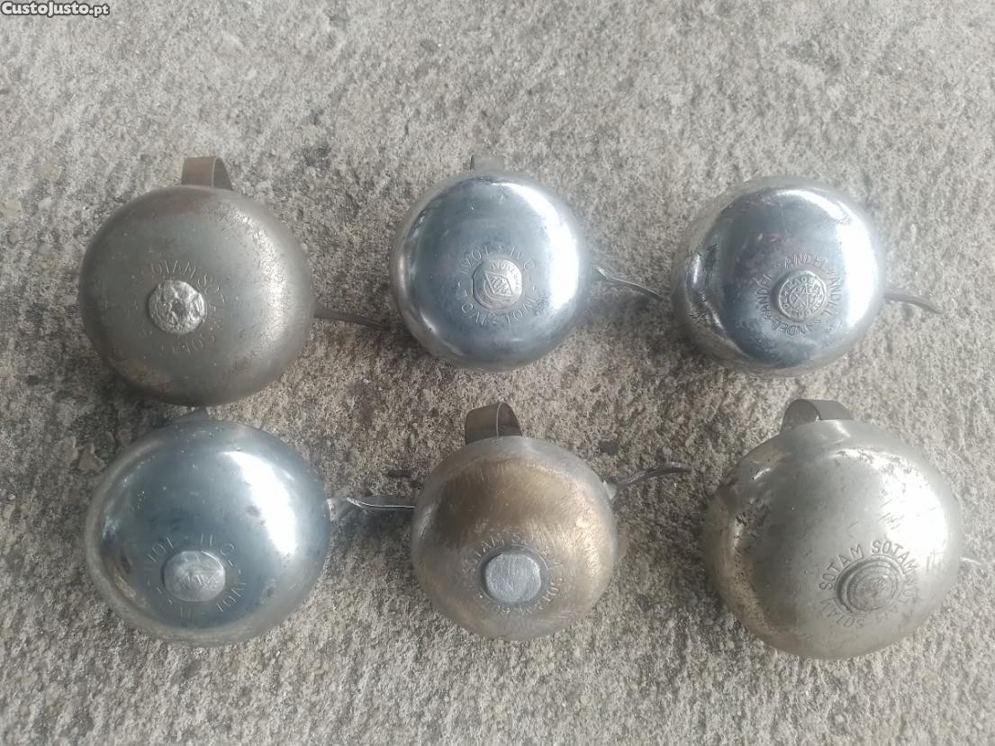 Lote de 6 campainhas antigas SOTAM ANDEL IVOL Funcionais todas a funcionar bem para coleção decoração ou colocar na sua pasteleira estão como mostra as fotos tenho mais bicicletas e peças ver os meus outros anúncios para contactar ou tirar alguma duvida através do anuncio enviar mensagem ao anunciante ou através do contacto que está no anuncio muito obrigado..nota :o valor mencionado é do lote todo