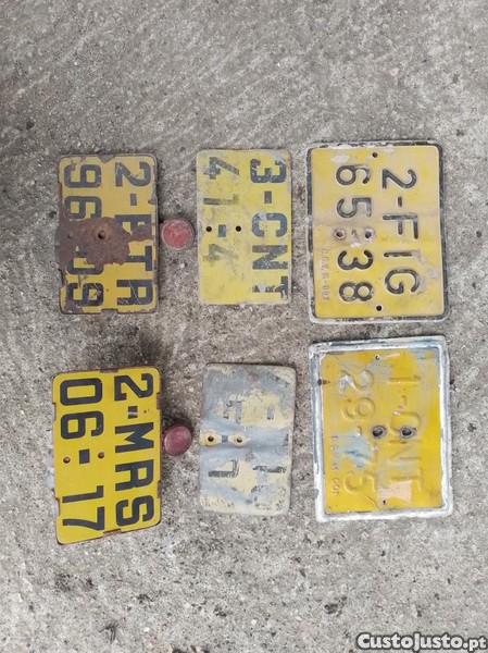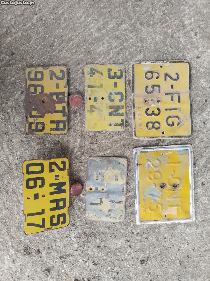 Lote de 6 matriculas antigas pasteleira para decoração ou coleção as que estão nas fotos alguma já tem o sinal dos tempos estáo como mostra as fotos tenho mais bicicletas e peças ver os meus outros anúncios para contactar ou tirar alguma duvida através do anuncio enviar mensagem ao anunciante muito obrigado..nota o valor mencionado é do lote todo