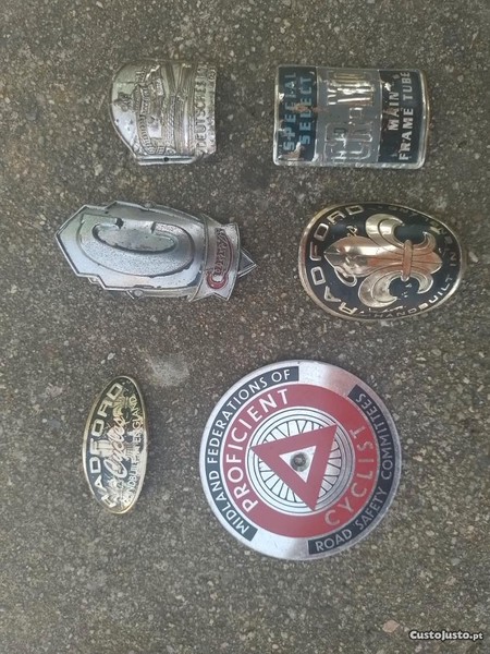Lote de Chapinhas de testa Inglesas England para coleção pasteleiras várias estão como mostra as fotos tenho mais bicicletas e peças ver os meus outros anúncios para contactar ou tirar alguma duvida através do anuncio enviar mensagem ao anunciante ou através do contacto que está no anuncio muito obrigado..nota: o valor mencionado é do lote completo .