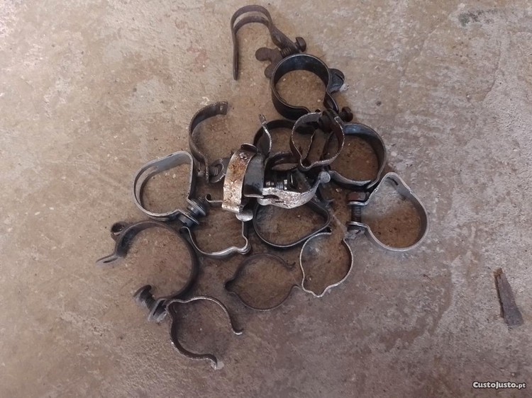 Lote de clipes antigos ingleses para segurar bicha de travão ao quadro pasteleiras e braçadeiras antigas das primeiras material bom inglês para limpar e ou zincar cromar para o seu restauro está como mostra as fotos tenho mais bicicletas e peças ver os meus outros anúncios para contactar ou tirar alguma duvida através do anuncio enviar mensagem ao anunciante ou através do contacto que está no anuncio muito obrigado.nota:o preço mencionado é do conjunto(tudo o que está nas fotos