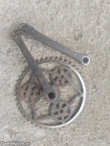 Made in England Old Bike Store pedaleira ROYAL ENFIELD 46D. muito antiga dentes aceitáveis (atenção: importante há uma parte dos dentes da pedaleira que estão um pouco mais desgastados(ver fotos) mas quem anda nisto sabe que já tem muitos anos e tem o desgaste inerente dos mesmos não é nada que impossibilite o bom funcionamento da mesma é só mesmo para informar)está como mostra as fotos tenho mais bicicletas e peças ver os meus outros anúncios para contactar ou tirar alguma duvida através do anuncio enviar mensagem ao anunciante preferencialmente pois o contacto apresentado nem sempre está disponível muito obrigado..