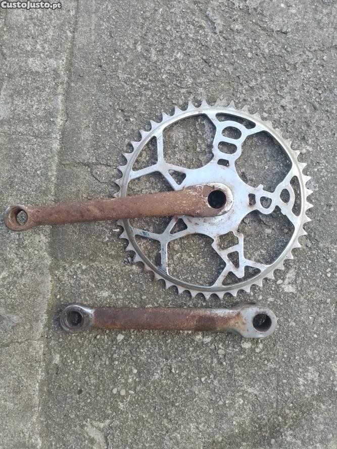 Made in England Old Bike Store pedaleira B.S.A antiga dentes como novos para a sua bicicleta de época ou para o seu restauro completa com o crenk do lado esquerdo está como mostra as fotos tenho mais bicicletas e peças ver os meus outros anúncios para contactar ou tirar alguma duvida através do anuncio enviar mensagem ao anunciante preferencialmente pois o contacto apresentado nem sempre está disponível muito obrigado..