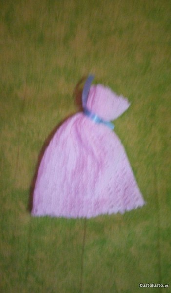 Gorro de lã rosa com fita azul para Nancy, Pepa, Mariquita Perez ou similares. 10cm de diâmetro.