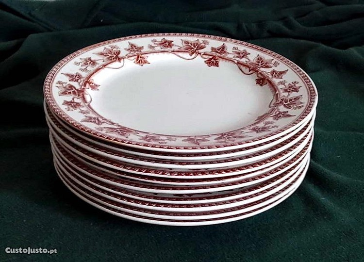 Conjunto de 10 pratos em porcelana wedgwood & C ivy patern 15, do final de 1800 (entre 1860 e 1900), robustos, em muito bom estado. Só não envio à cobrança e os portes são à parte