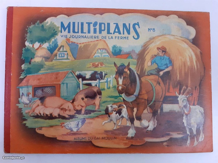 3 Livros antigo em francês da Coleção Multiplans de 1950 com figuras animadas (recortadas).