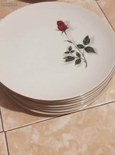 Preço: 173 €7 pratos porcelana fina com rosa da Bavaria
