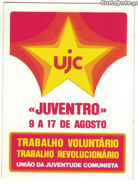Preço: 4 €Autocolante - UJC - Juventro 9 a 17 de Agosto - Trabalho Voluntário / Trabalho Revolucionário