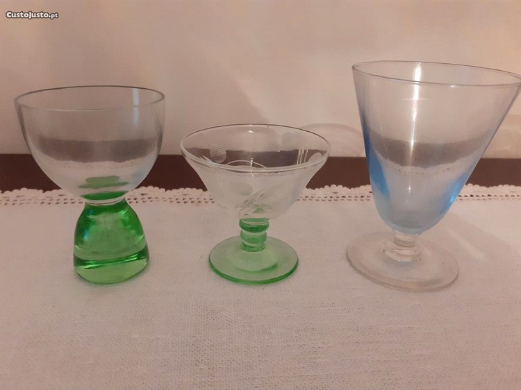 Cálices de vidro vintage: lote verde e rosa