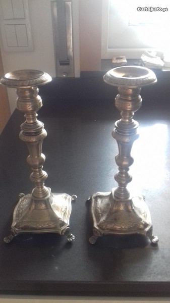 Par de Castiçais em Prata Portuguesa da marca Águia com quase 100 anos.