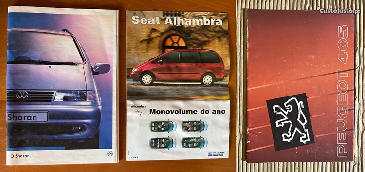 Catálogo VW Sharan, edição de Outubro de 1997, em excelente estado e folheto Seat Alhambra + Catálogo Peugeot 405 de 1990