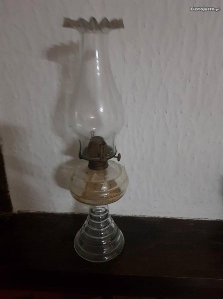 Lamparina de cristal, a combustão. Mede 43,5cm e 11cm de base.