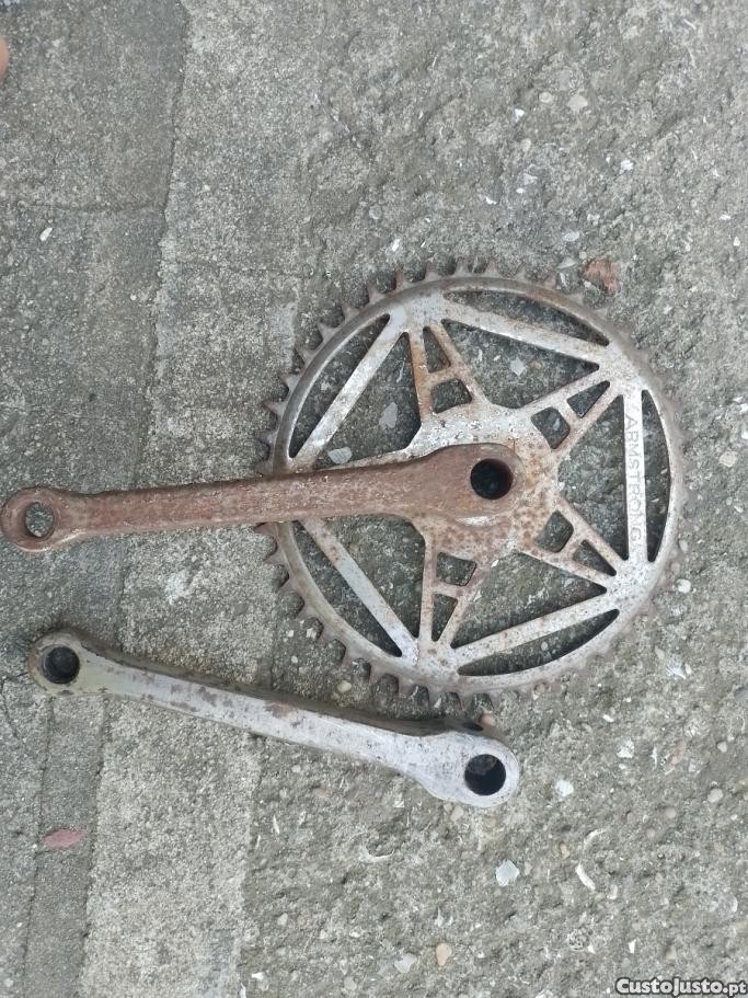 Made in England Old Bike Store pedaleira Armstrong antiga dentes como novos para a sua bicicleta de época ou para o seu restauro completa com o crenk do lado esquerdo está como mostra as fotos tenho mais bicicletas e peças ver os meus outros anúncios para contactar ou tirar alguma duvida através do anuncio enviar mensagem ao anunciante preferencialmente pois o contacto apresentado nem sempre está disponível muito obrigado..