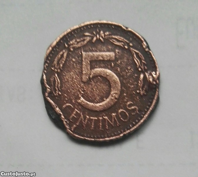 Moeda 5 Cêntimos com Defeito 1974