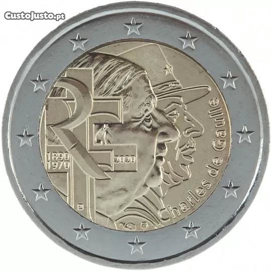 Moeda Comemorativa 2 EUR - Charles de Gaulle (França 2020)