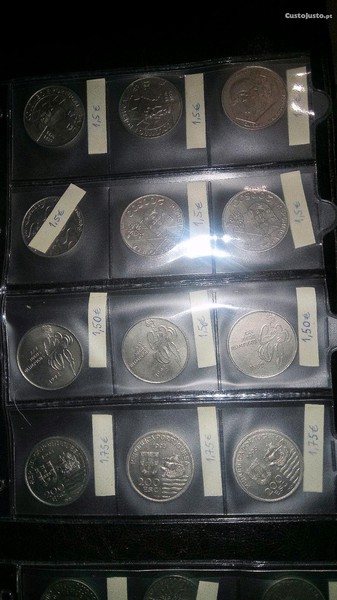 Usadas, de vários anos, de 1 e 0,50; 2,50; 5; 10; 15; 20; 25; 5; 100 e 200 Escudos. De circulação, comemorativas e de outros Países. Inclusive 1 moeda de 2,50 Escudos em prata.