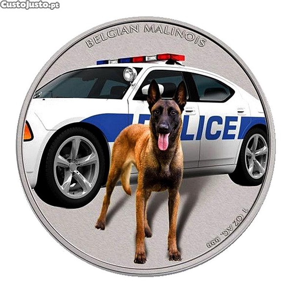 Preço: 110 €Niue 1 $ 2016 pastor Belga Malinois 1 onça de prata colorida de acabamento antigo