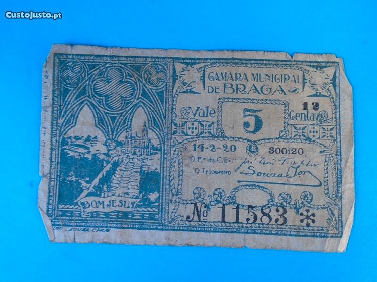Preço: 6 €Nota-Cédula 5 Centavos Câmara Municipal de Braga