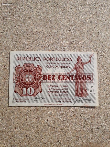 Preço: 10 €Nota-cédula de 10 centavos 1917 "'série A"