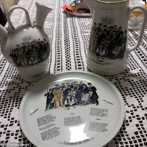 Conjunto de 3 peças da Vista Alegre alusivas ao Carnaval de Ilhavo dos anos 1978, 1980 e 1981.