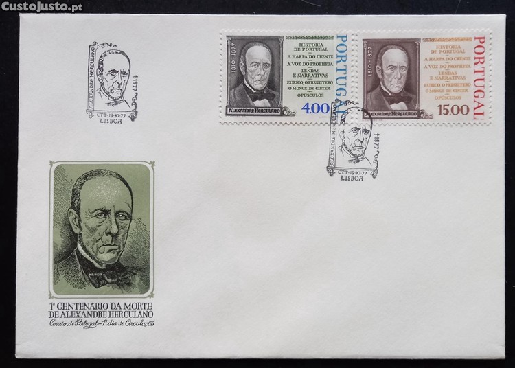 Selos Portugueses - FDC 1977 1º Centenário da Morte de Alexandre Herculano