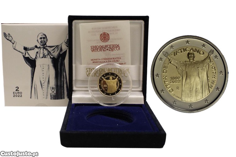 Preço: 90 €vaticano 2 euro proof 2022 125º anniversario della nascita di papa paolo vl