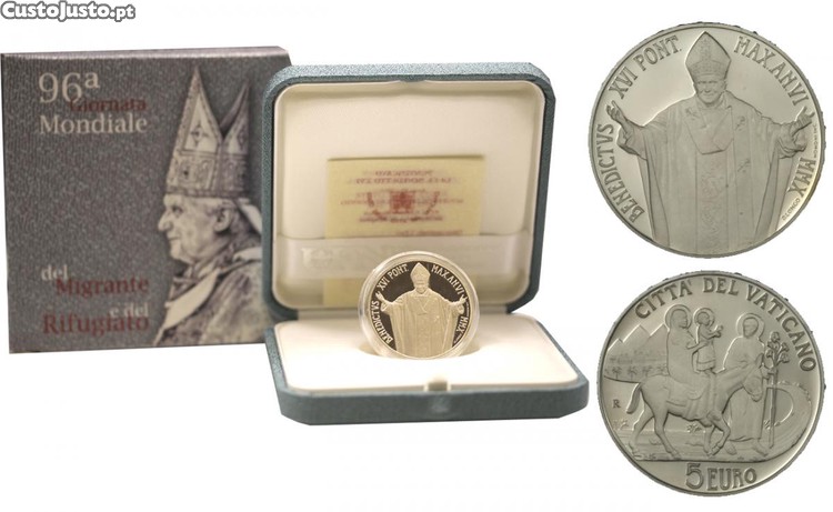 Preço: 90 €vaticano 5 euro prata proof 2010 96º giornata mondiale del migrante e del rifugiato