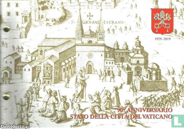 Preço: 95 €vaticano numiscover 2 euro 2019 + selos 1.10 +1.15 euro 90º anniversario stato della