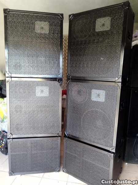 São 2 graves 15" 4 topos 3 vias de 15" 1 grave 18".