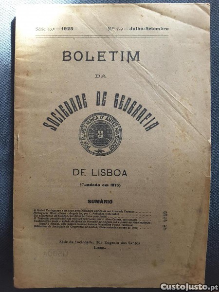 In Boletim da Sociedade de Geografia de Lisboa, Série 43.ª, n.º 7-9, Julho-Setembro 1925, pág. 125/174-IX-X