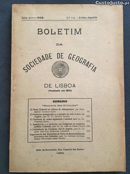 In Boletim da Sociedade de Geografia de Lisboa, série 47.ª, n. 7/8, Julho/Agosto de 1929, pág. 180/301