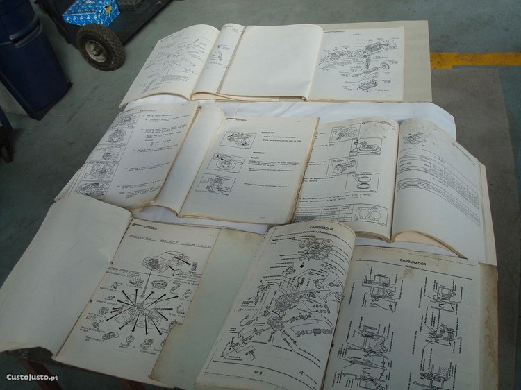 vários manuais de dados técnicos sobre algumas viaturas nissan