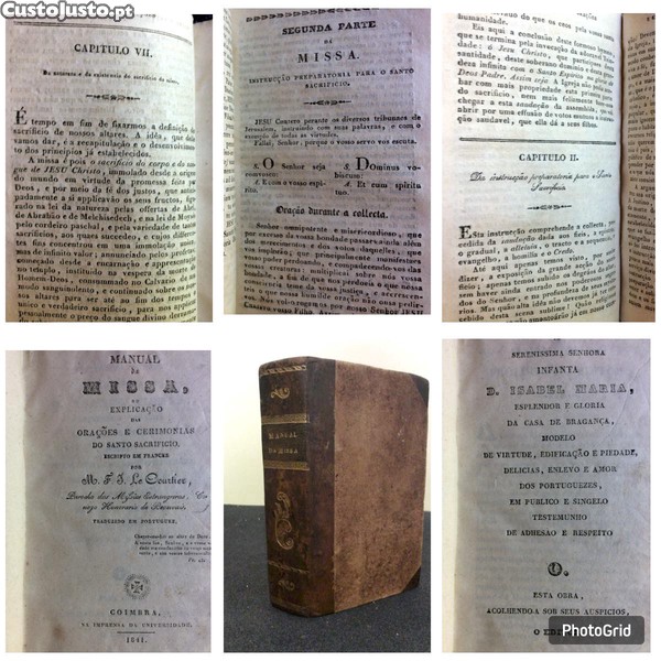 Ou explicação das Orações e Cerimonias do Santo Sacrificio. Escripto em francez por... Parocho das Missões Estrangeiras, Conego Honorario de Beauvais. Traduzido em Portuguez. Imprensa da Universidade. Coimbra. 1841.