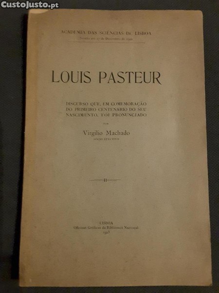Louis Pasteur. Discurso que, em comemoração do primeiro Centenário do seu nascimento, foi pronuciado por Virgílio Machado.