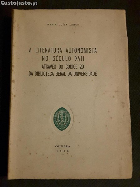 Preço: 12 €Maria Luísa Lemos - A Literatura Autonomista na Século XVII