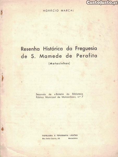 Preço: 18 €Resenha Histórica da Freguesia de S. Mamede de Perafita (Matosinhos) de Horácio Marçal