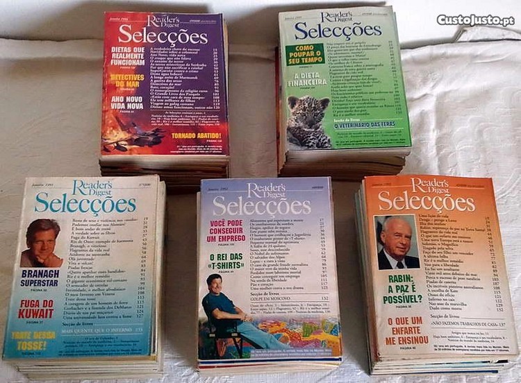 Selecções Readers Digest , 5 anos completos de 1991 a 1995, Original, em bom estado de conservação, 60 revistas, 8,3 Kgs. Caixa com 30 x 20 x 25 cm. Não envio por correio a não ser que pague por transferência e com portes a cargo do comprador.