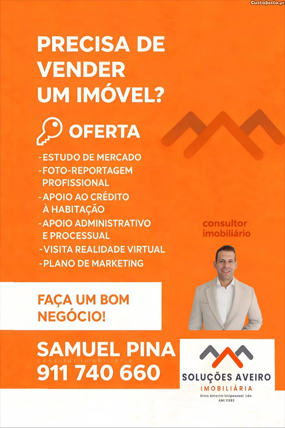 Sou o Samuel Pina, consultor imobiliário da Soluções Aveiro Imobiliária, e estou aqui para o ajudar a fazer um bom negócio. Com a minha experiência e um serviço completo, garanto um processo de venda transparente e sem complicações.