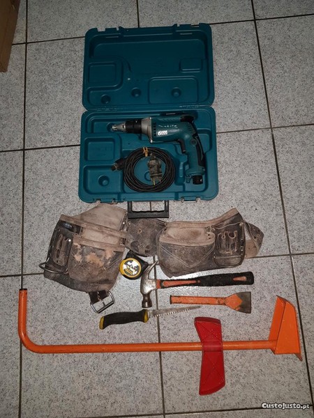 Vendo kit para montagem de Pladur composto por; Aparafusadora Makita com mala, cinto, fita métrica, martelo, cunha, serra e peça de elevação da placa.