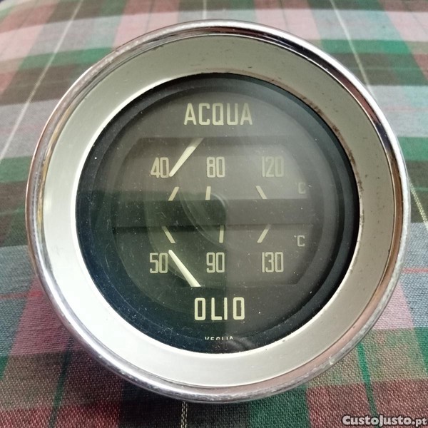 Vendo manómetro duplo de temperatura (Acqua) e pressão de óleo (olio) raro original usado e funcional.