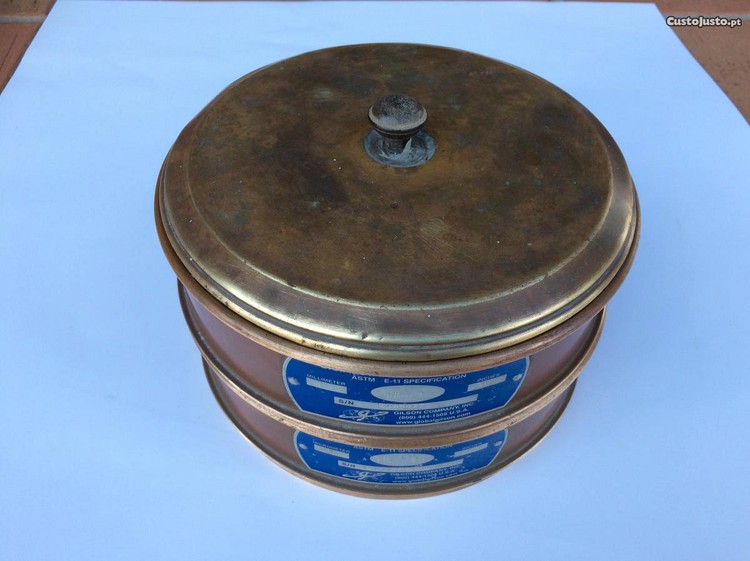 Preço: 34 €Peneiras de teste laboratorial empilháveis em latão com tampa