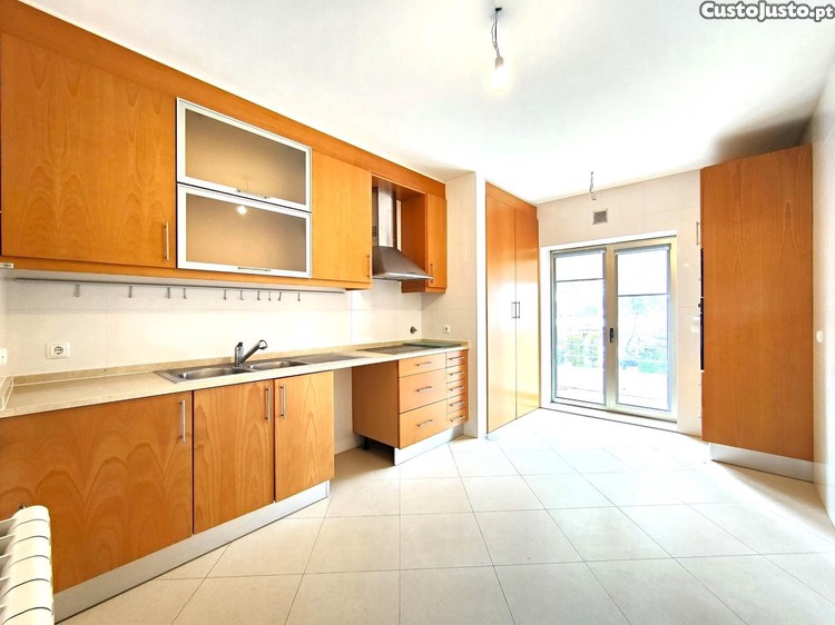 Na área privativa, destacam-se uma suíte com WC privativo e um segundo quarto, ambos com amplos roupeiros embutidos, além de uma elegante casa-de-banho completa e uma útil despensa.