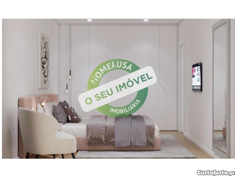 Este apartamento conta com terraço de grandes dimensões e garagem fechada com dimensões para 4 carros.