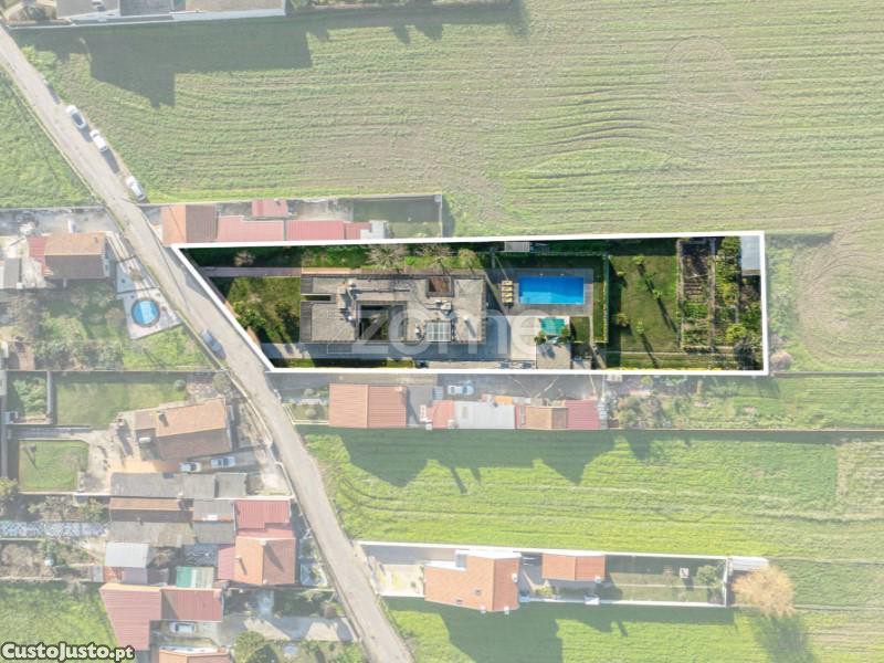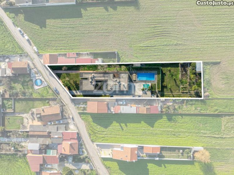 No exterior existe uma ampla área ajardinada, piscina, zona de churrasco , garagem, lavandaria e arrumos.