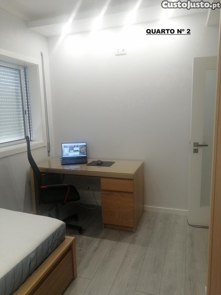 Os quartos fazem parte de um apartamento T4 remodelado e mobilado de novo.