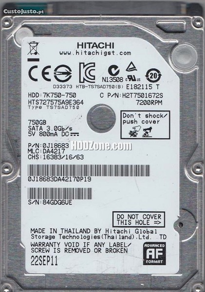 Preço: 30 €Disco Rígido - Hitachi HTS547575A9E384 (HDD; 750 GB; 2.5')