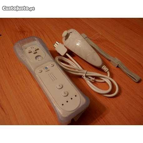 Comando para a Wii completamente novo, mais o Nunchuk, a capa protectora de silicone e a fita de pulso.