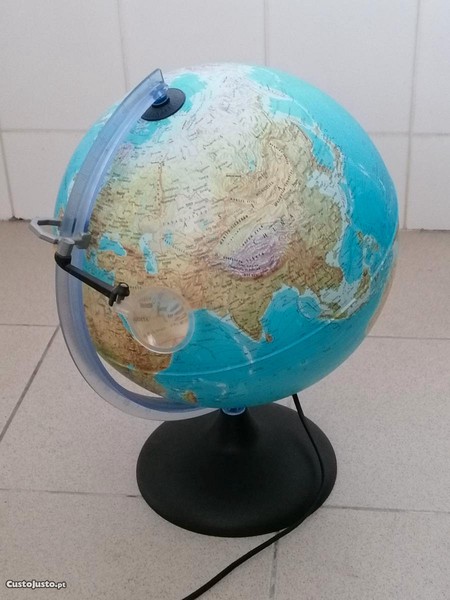 Globo grande com iluminação e lupa completamente novo, pode ser usado como candeeiro.