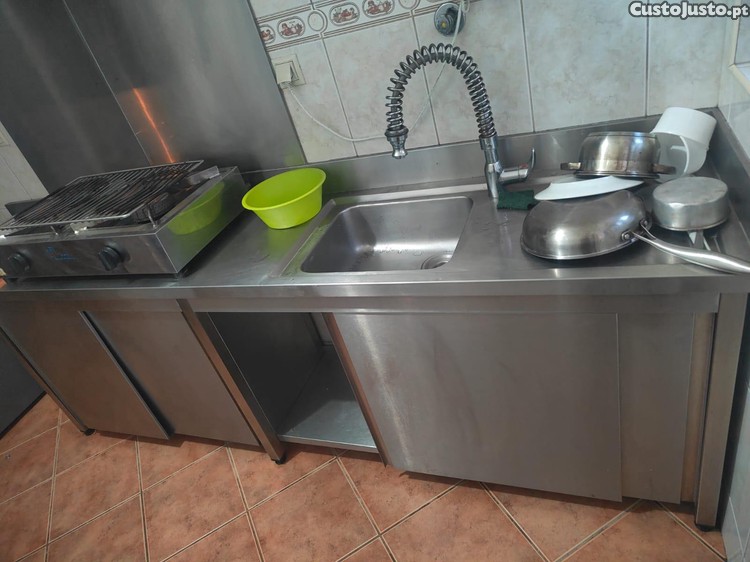 Vendo conjunto completo em inox, composto por bancada profissional, lava-loiça embutido com torneira de mola e exaustor em inox.