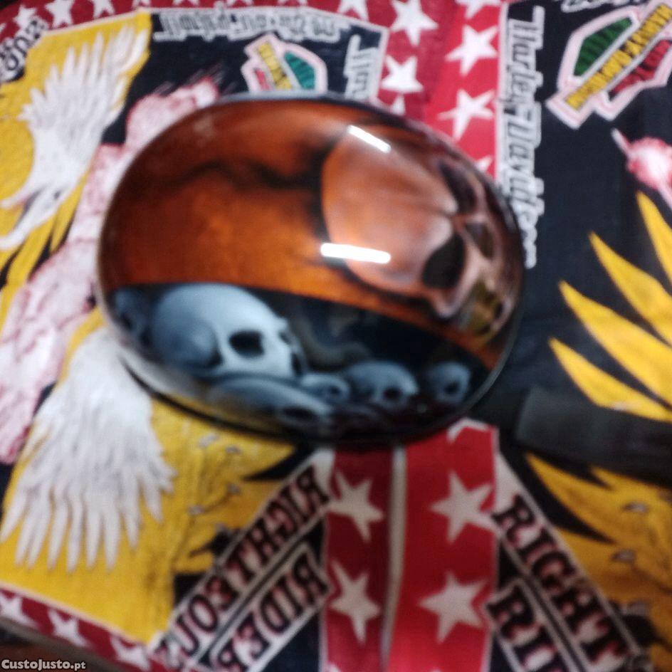 vendo capacete Quico com pintura personalizada caveiras ideal para eventos motard chpoper etc para mais informações mande mp ou ligue para o número do anúncio